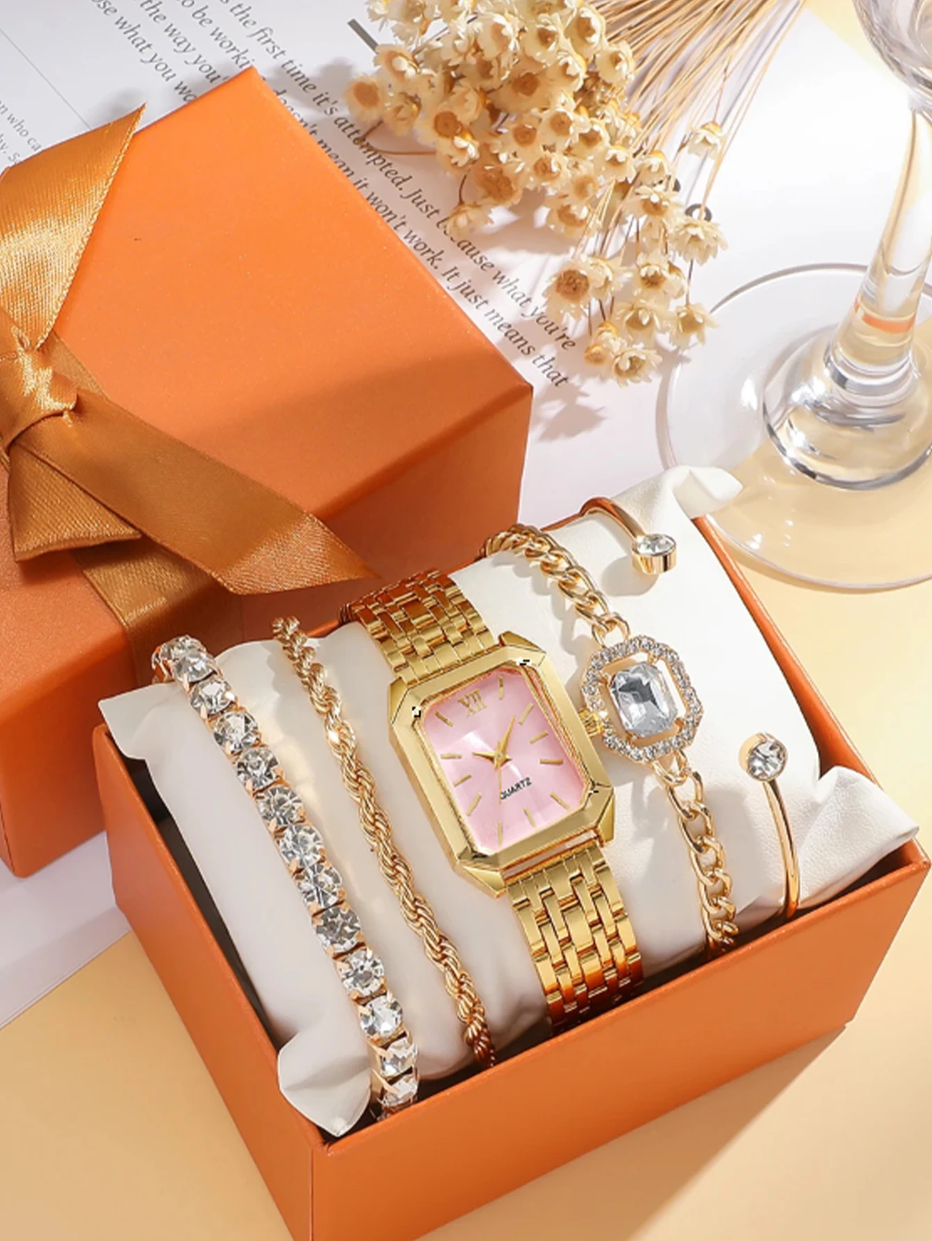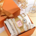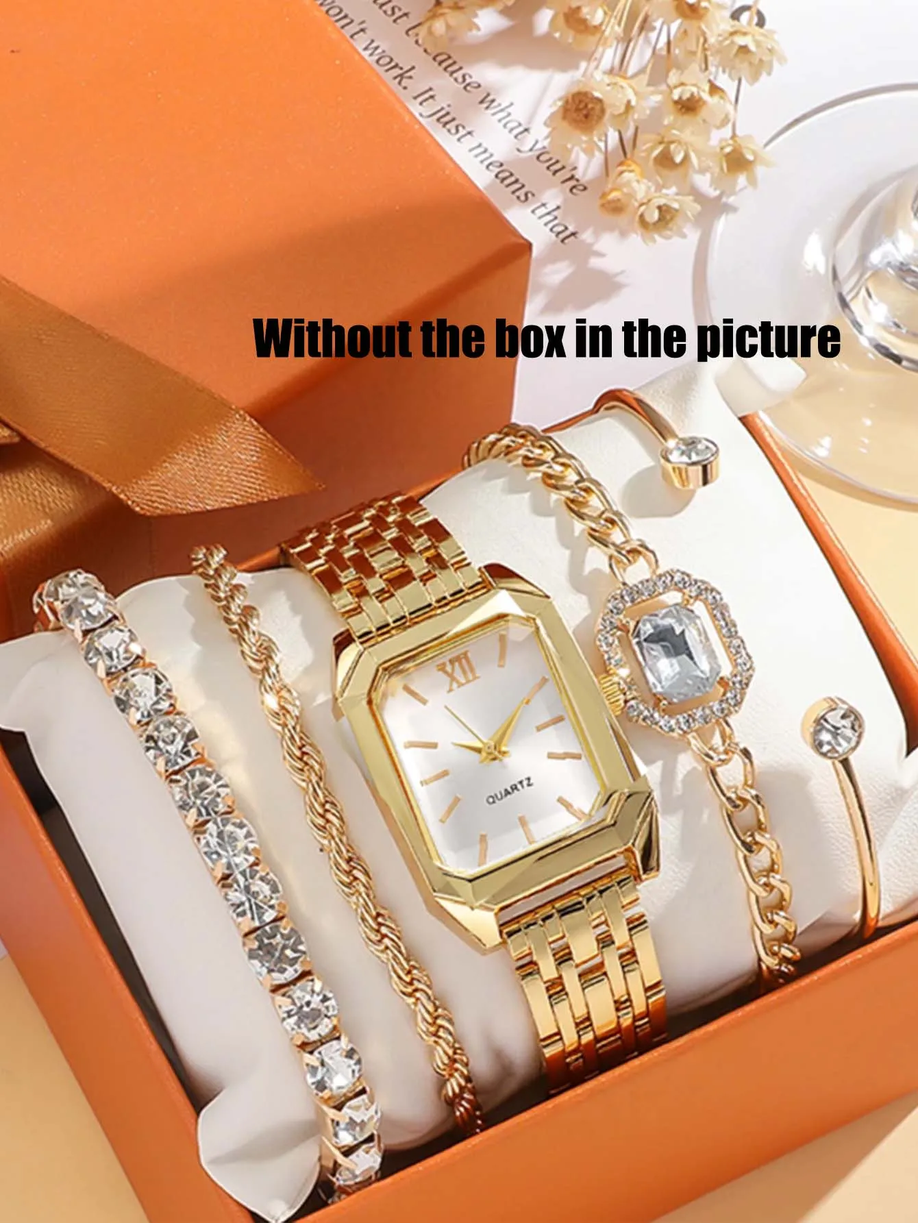 Home » Shop » Fashionable Simple Women’s Small Square Dial Alloy Strap Women’s Quartz Watch Diamond Set Bracelet 5 Piece Set for Thanksgiving
