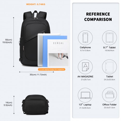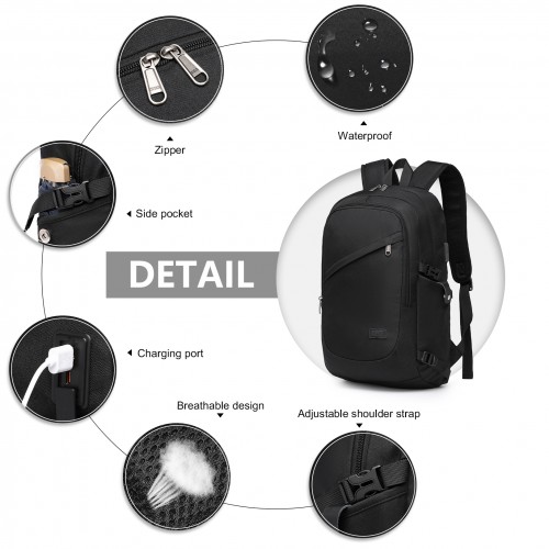 BPK2426 – Kono Minimalist Design Tech Backpack with USB & Type-C Port and Laptop Compartment – Black