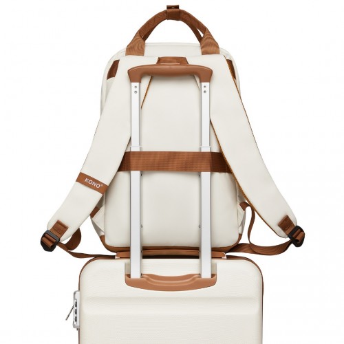 Comfort is ensured with adjustable padded shoulder straps, including a subtle “KONO” logo on the left side, and a sturdy double top handle for alternative carrying.
