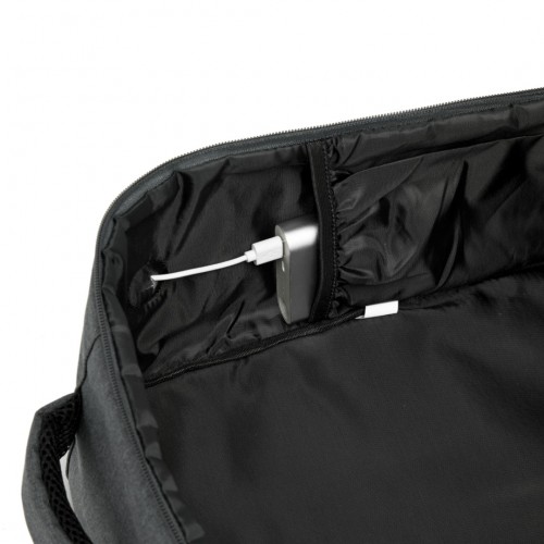A discreet cross-shaped opening provides convenient access for headphone or charging cables, while the side pocket is ideal for carrying water bottle or umbrella.