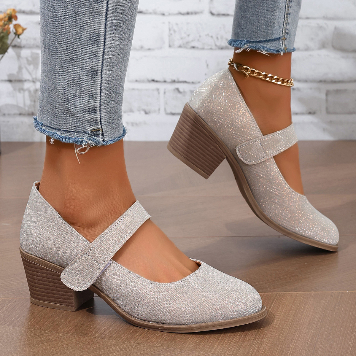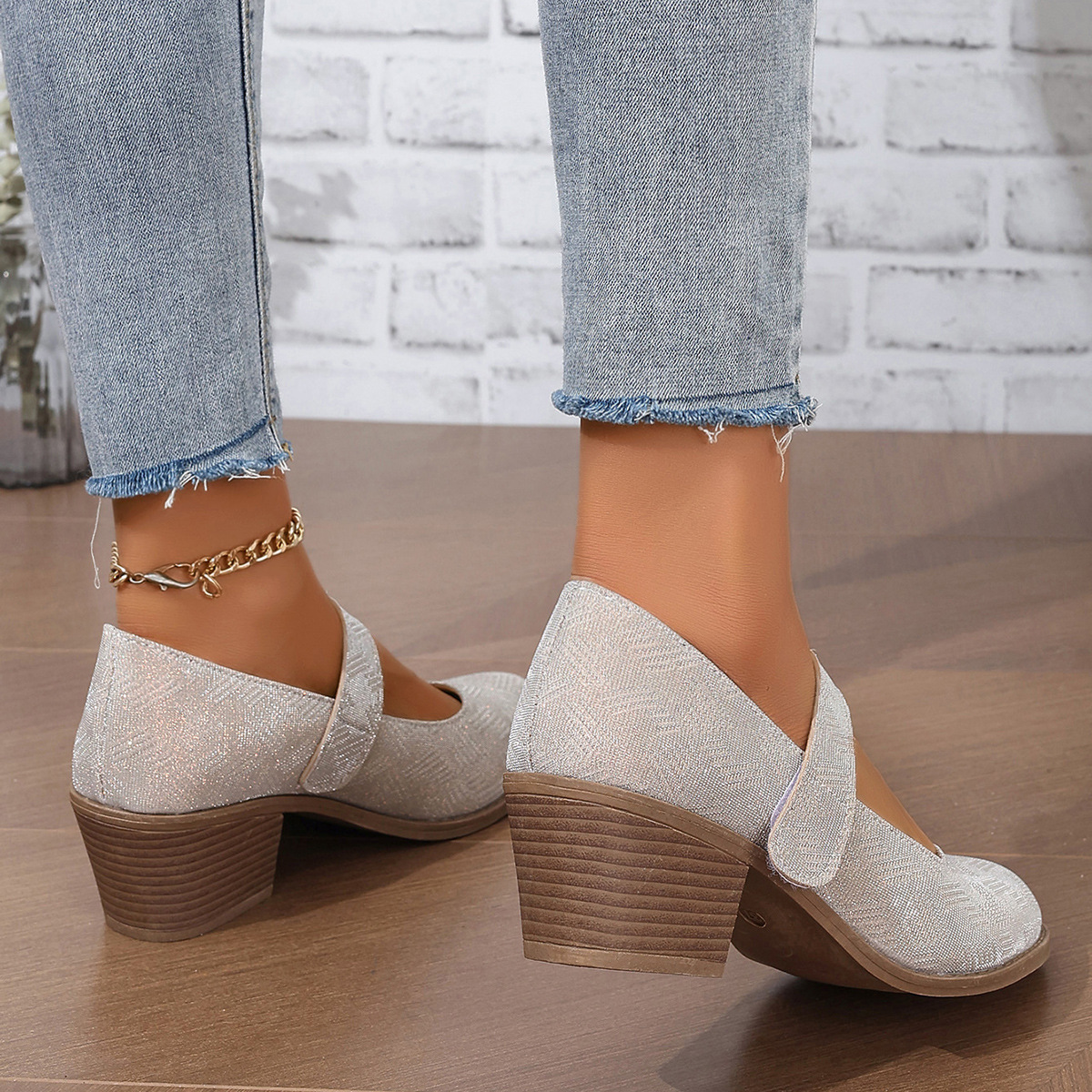 Home » Shop » Chunky Heel Height Increasing Women Pumps Velcro Convenient Simple round Toe Women High Heel Single Layer Shoes round Toe