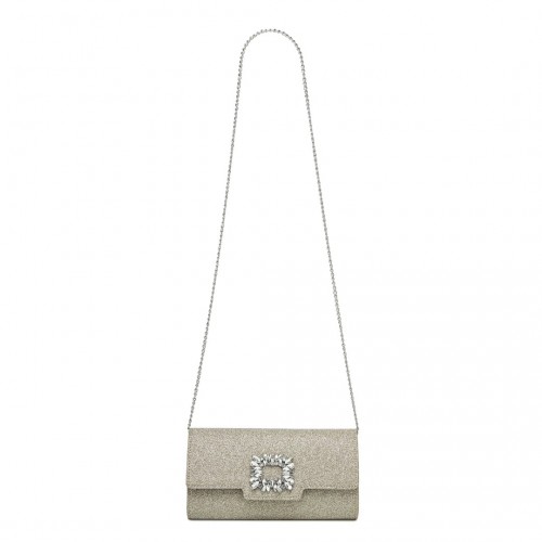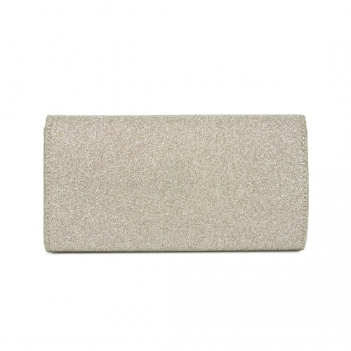 CLM2461 – Glitter Evening Clutch with Crystal Embellishment & Detachable Chain Strap – Elegant Crossbody or Handheld Bag – Gold