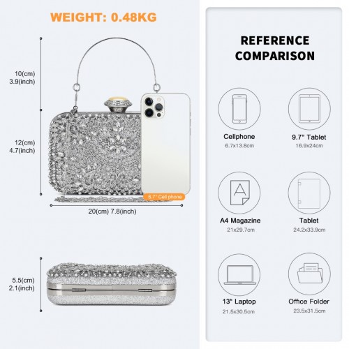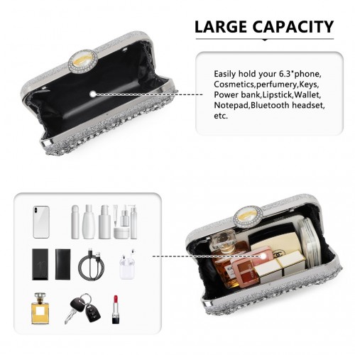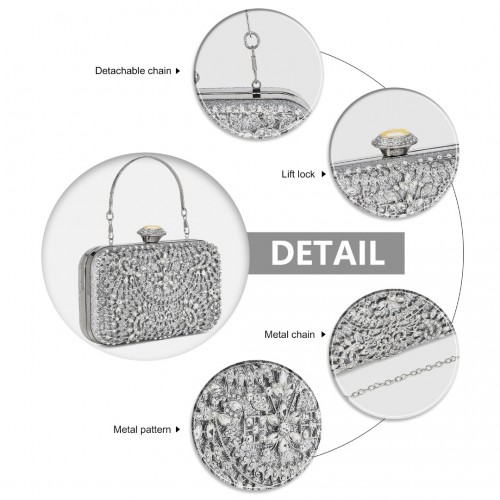 Home » Shop » CLS2447 – Elegant Evening Clutch Bag with Rhinestone Embellishments Detachable Handle and Chain Strap – Silver