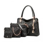E6714-Miss LuLu Fashion PU Leather Handbag Purse 4pcs Set BLACK