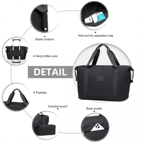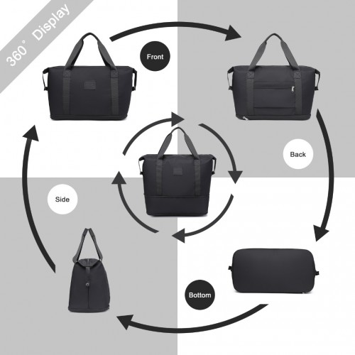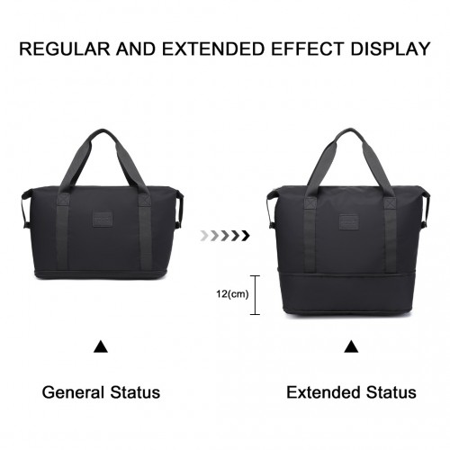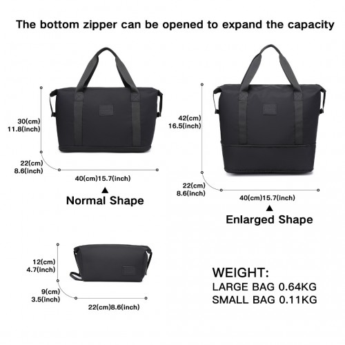 EA2212 – Kono Two Pieces Expandable Durable Waterproof Travel Duffel Bag Set – Black
