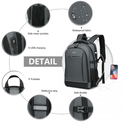 EM2130 – Kono Functional Travel Backpack With USB Charging Port – Grey