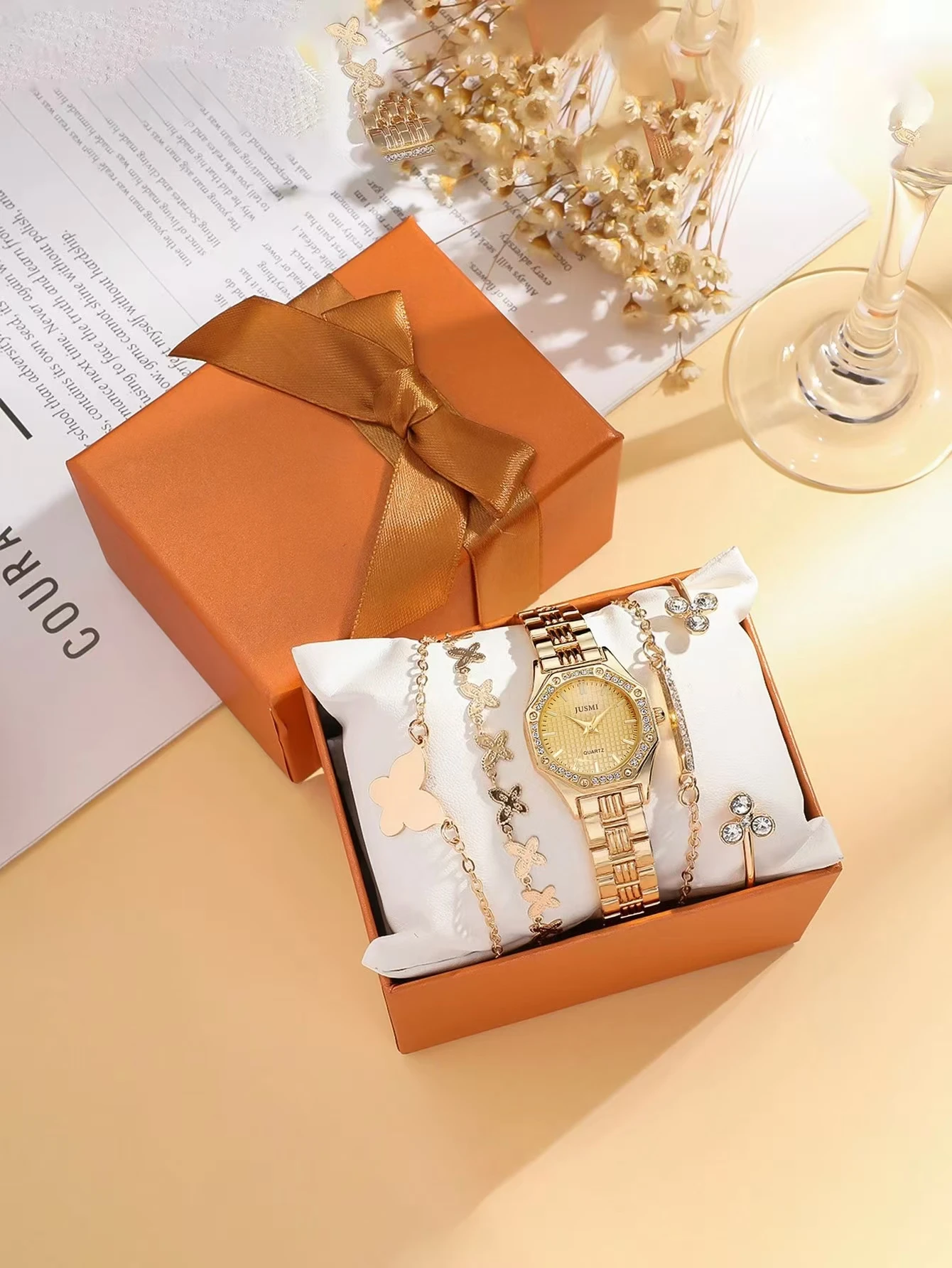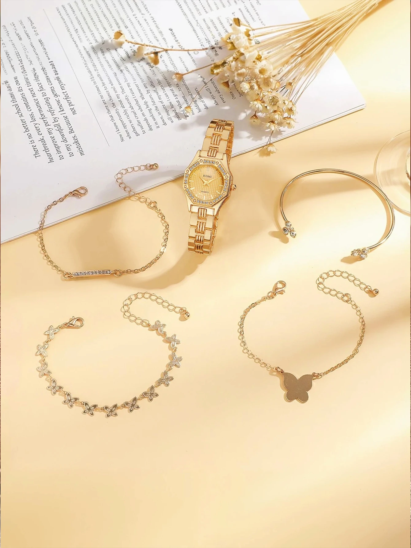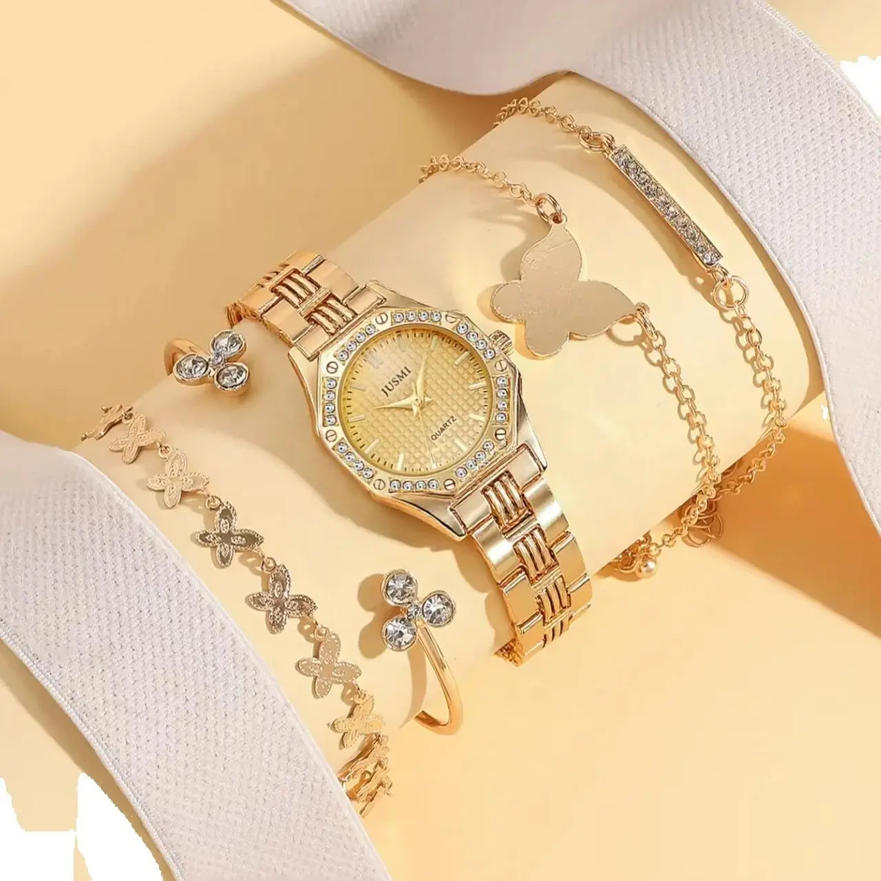 Home » Shop » Fashionable Simple Diamond Set Dial Alloy Quartz Women’s Watch Butterfly Bracelet Set of 5, Suitable for Thanksgiving and Christmas