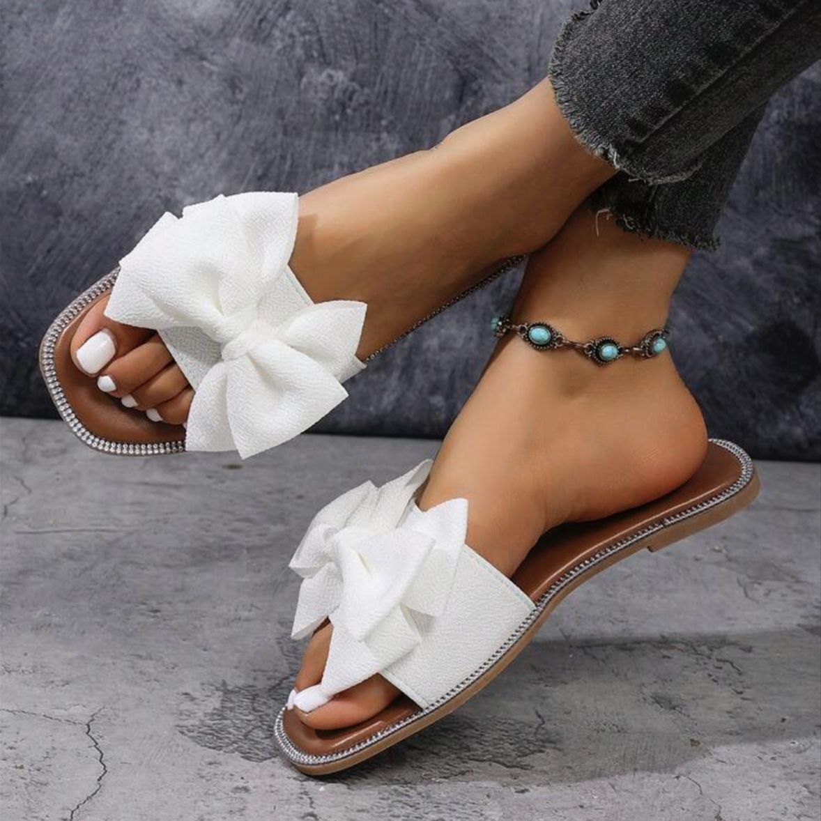 Flat Square Toe Slippers Women Outer Wear Bow Flat Heel Cloth Sandals
