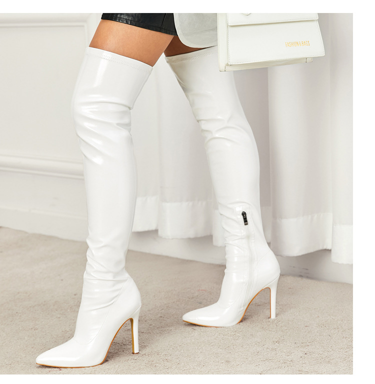 Heels High Heel Soft Patent Leather Zipper Outdoor Stretch Knee Pointed Boots Multicolor