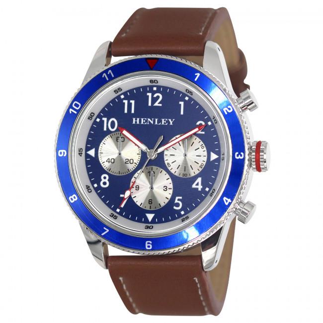 Henley Mens Multi Eye Blue Dial With Brown Sports Large Leather Strap Watch H02219.26