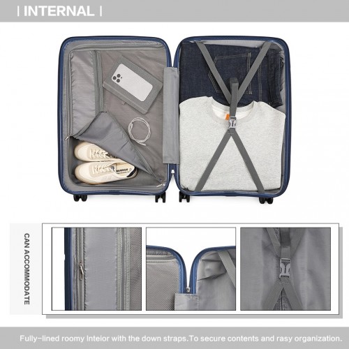 K2393L – British Traveller 20 Inch Spinner Hard Shell PP Suitcase With TSA Lock – Navy