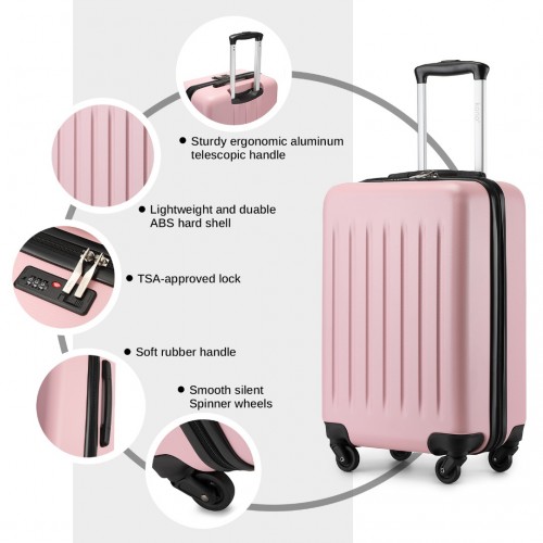 KSK2477 – Kono Durable 20 Inch Lightweight ABS Vertical Textured Carry-On Suitcase with Secure 3-Digit Lock – Pink