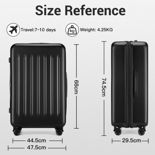 Home » Shop » KSK2477 – Kono Premium 3-Piece Vertical Textured Hard-Shell ABS Luggage Set with 3-Digit Lock & TPE Silent Wheels – Black