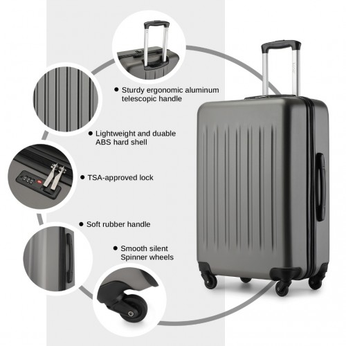 Home » Shop » KSK2477 – Kono Premium 3-Piece Vertical Textured Hard-Shell ABS Luggage Set with 3-Digit Lock & TPE Silent Wheels – Grey