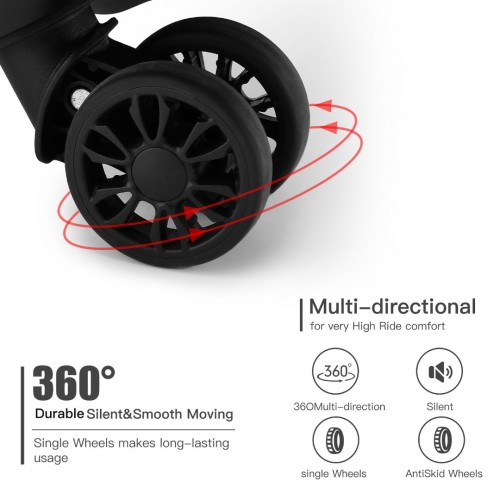 Designed for effortless travel, it features 360-degree rotating wheels that distribute weight evenly, making navigation through busy terminals a breeze.