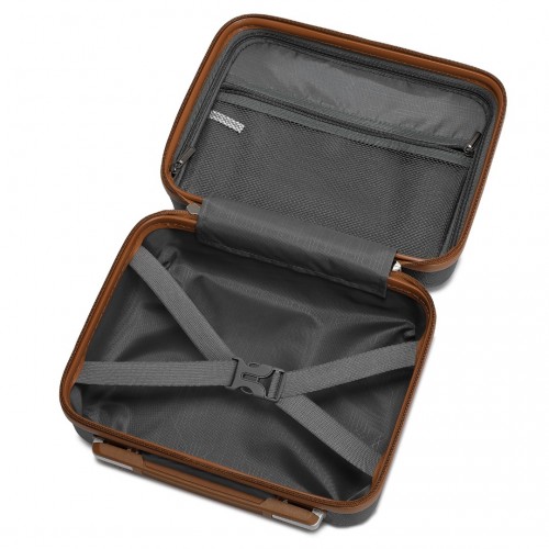 The back of the case is designed with a strap structure that can be attached to the handle of a larger trolley suitcase for hassle-free movement through airports and hotels.