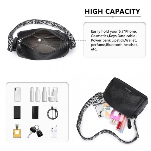 Ample space for your essentials, phone, purse, keys, cosmetics/toiletries and other small items.