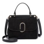 Two compartments with magnetic snap closure: one compartment has two open pockets and the other compartment has a zipped pocket