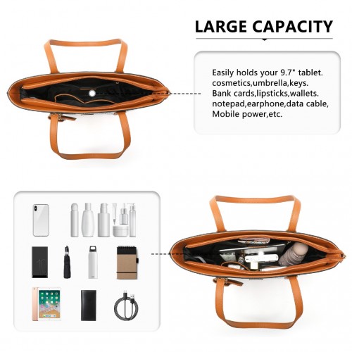 Small and delicate ” logo on the front of the tote bag. The main compartment is accessed via a zipper, internally there are two open pockets and a zipped pocket. These pockets are ideal for those items that you wish to have quick and easy access to.