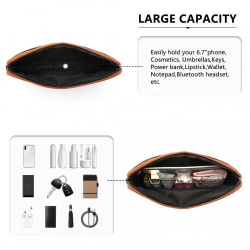 The clutch bag also comes with a wrist strap for easy portability.