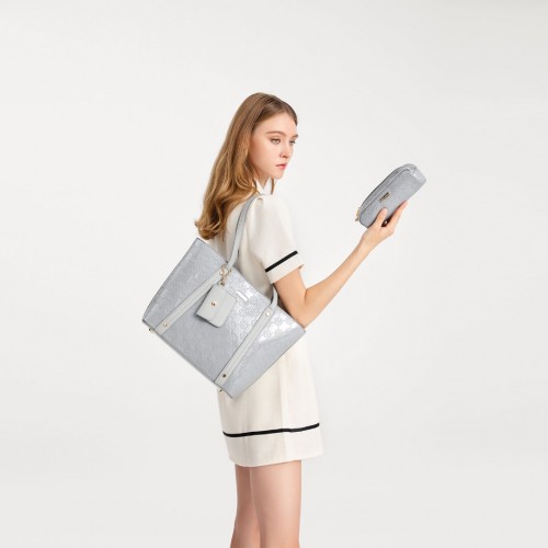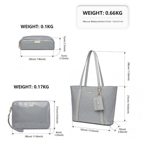 This handbag sets include 4 pieces (1 tote bag + 1 clutch bag + 1 cosmetic bag + 1 coin bag).