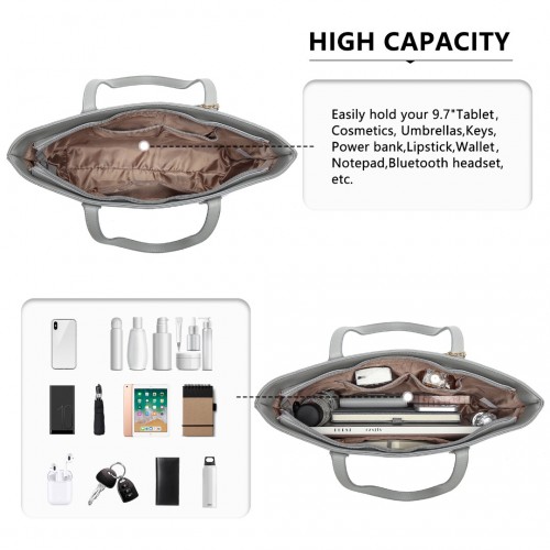 Small and delicate ” logo on the front of the tote bag. The main compartment is accessed via a zipper, internally there are two open pockets and a zipped pocket. These pockets are ideal for those items that you wish to have quick and easy access to.