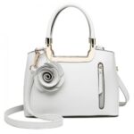 LG1847 – MISS LULU PU LEATHER ROSE HANGING ORNAMENT HANDBAG – WHITE