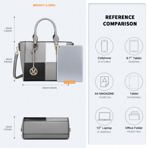 The bag features an eyecatching, simple and detachable ‘M’ pendant.