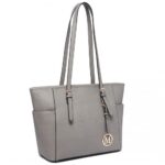 LM1642-1 – Miss Lulu Faux Leather Adjustable Handle Tote Bag – Grey