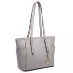LM1642-1 – Miss Lulu Faux Leather Adjustable Handle Tote Bag – Light Grey