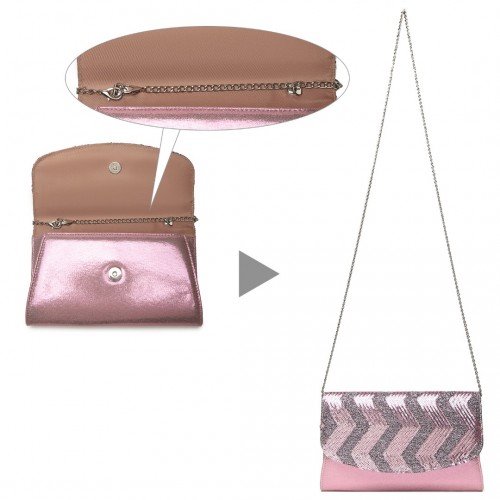 LP2311 – Gorgeous Sequins Evening Clutch Bag Chain Shoulder Bag – Pink