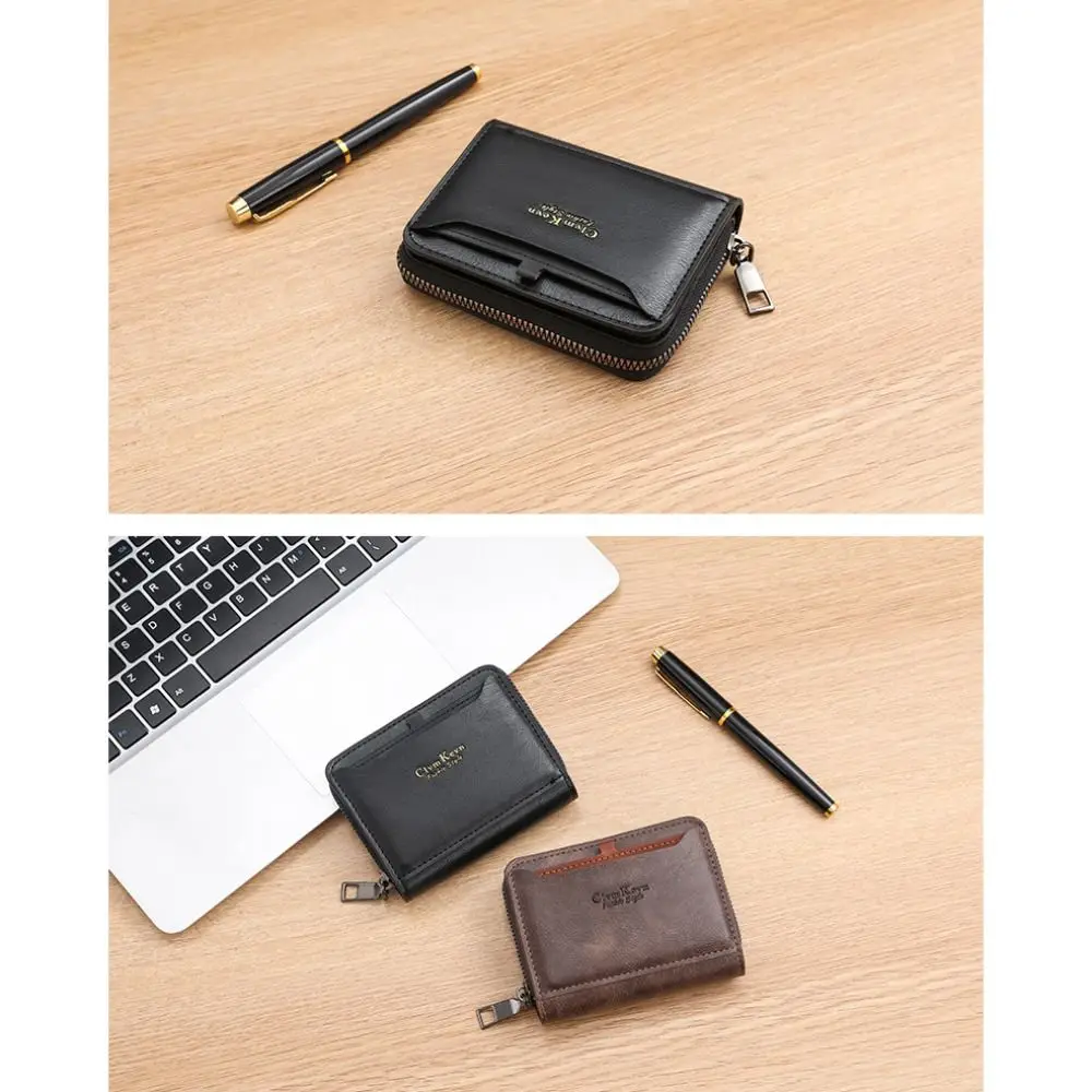 Luxury Designer Men’s Wallets PU Leather Multiple Slot Credit Card Holder Handbag for Men Short Wallet Zipper Coin Purse