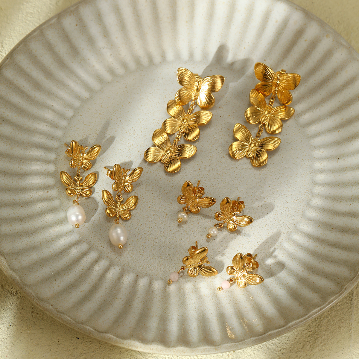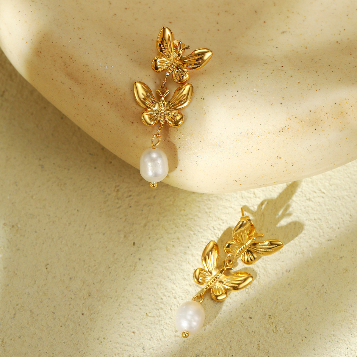 Home » Shop » Pearl Butterfly Tassel Titanium Steel Earrings Fashionable All Match Light Luxury High Sense Stainless Steel Studs