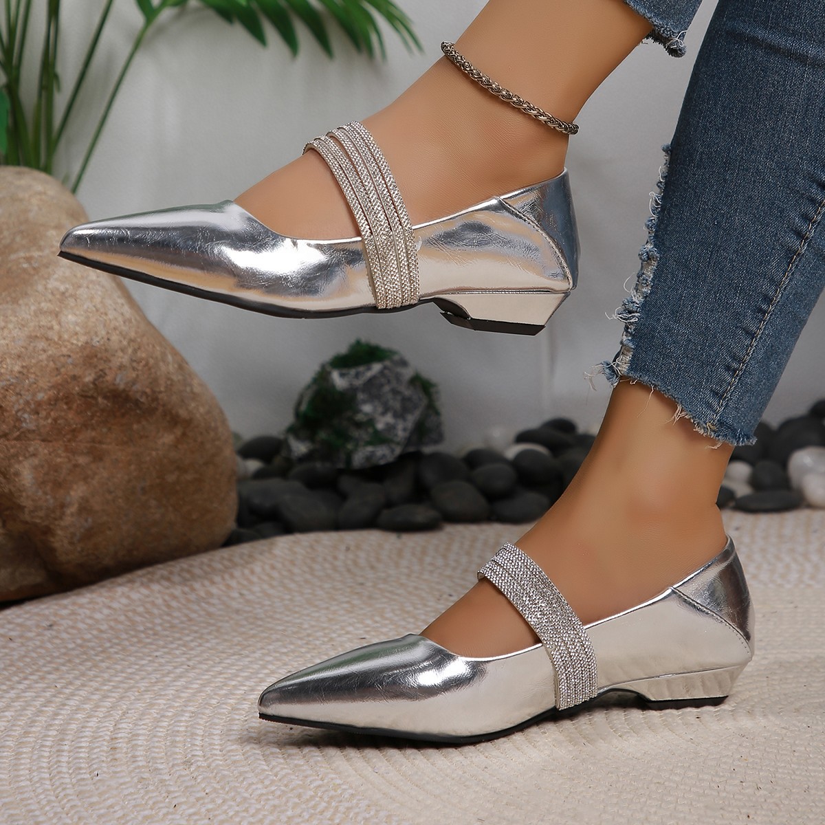 Home » Shop » Plus Size Rhinestone Pointed Toe Low Heel Shoes Women Shallow Mouth Metal Texture Dancing Work Shoes