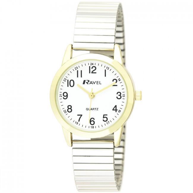 Ravel Ladies Bold Number White Dial Gold Expander Bracelet Watch R0232.22.2