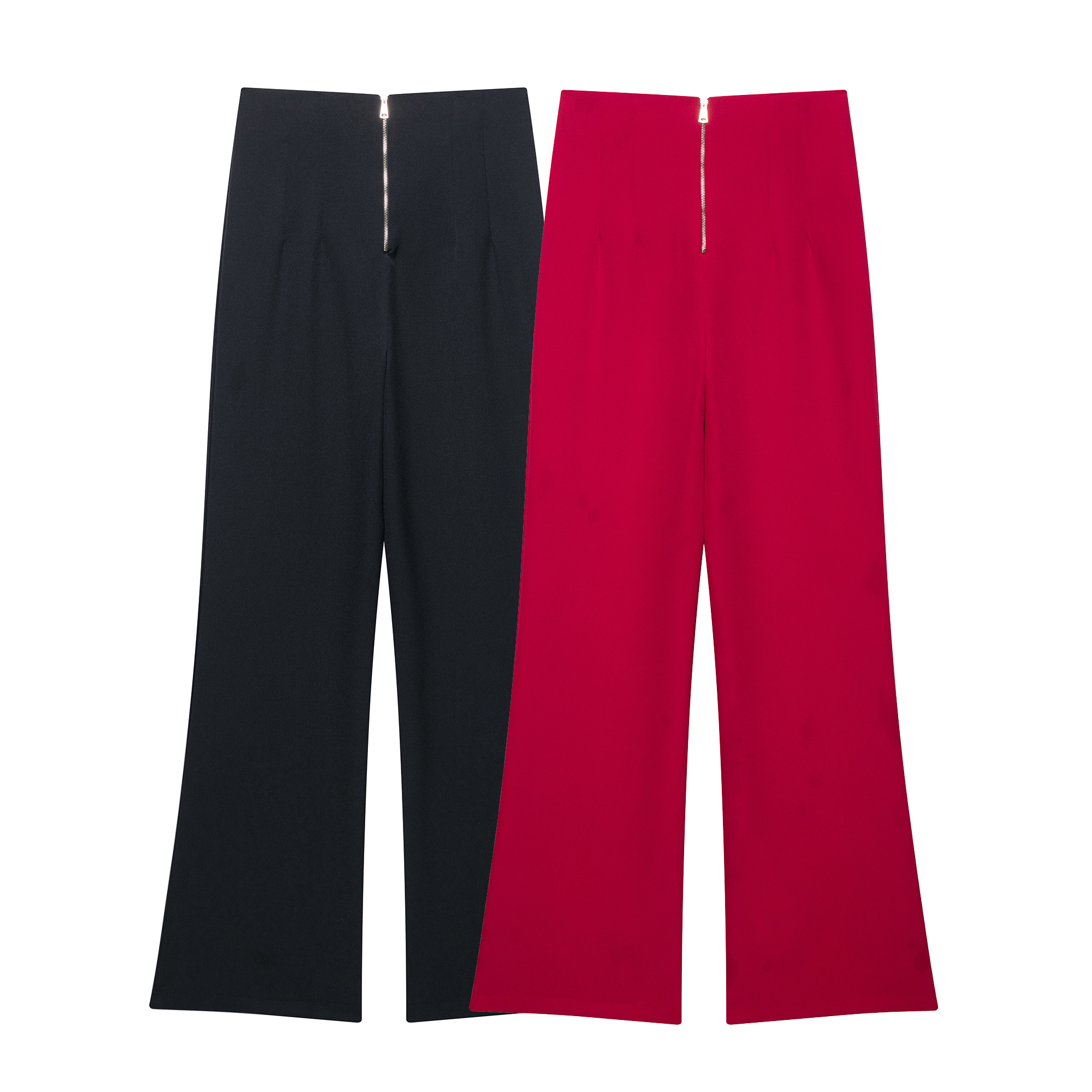 Home » Shop » Spring Women Clothing Fashionable Temperamental All Match Zipper Ornament High Waist Flared Casual Trousers