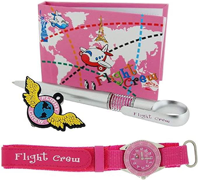 Time Design Girls Pink Pilot Design Watch, Badge, Pen & Note Book Gift Set TDX0713K21
