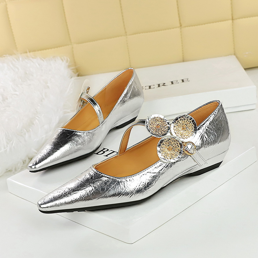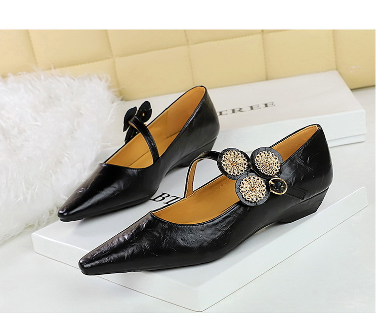 Vintage Metal Grip Pattern Shallow Mouth Wedge Women Shoes Metal Decorative Strap Women Shoes